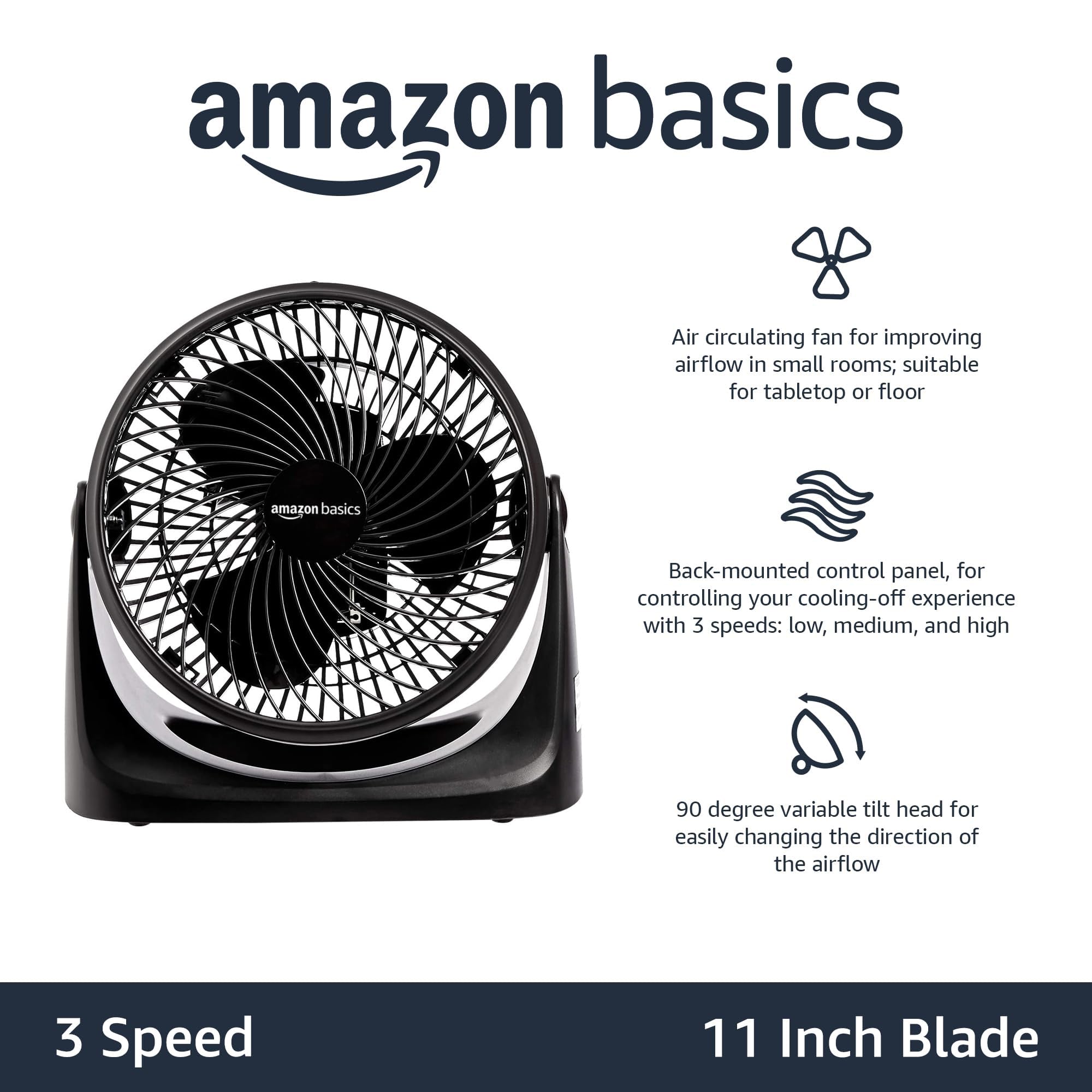 Amazon Basics 3 Speed Small Room Air Circulator Fan, 11-Inch