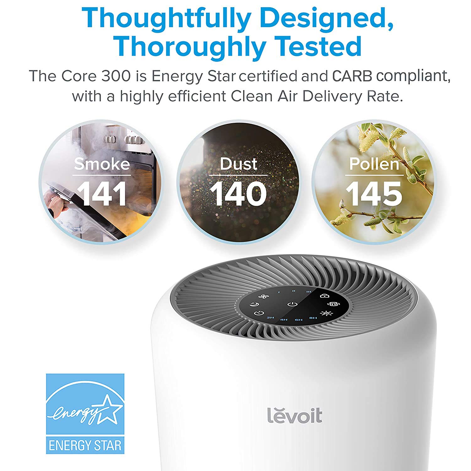LEVOIT Air Purifier for Home Allergies Pets Hair Smokers in Bedroom, H13 True HEPA Air Purifiers Filter, 24db Quiet Air Cleaner, Remove 99.97% Smoke Dust Mold Pollen for Large Room, Core 300, White