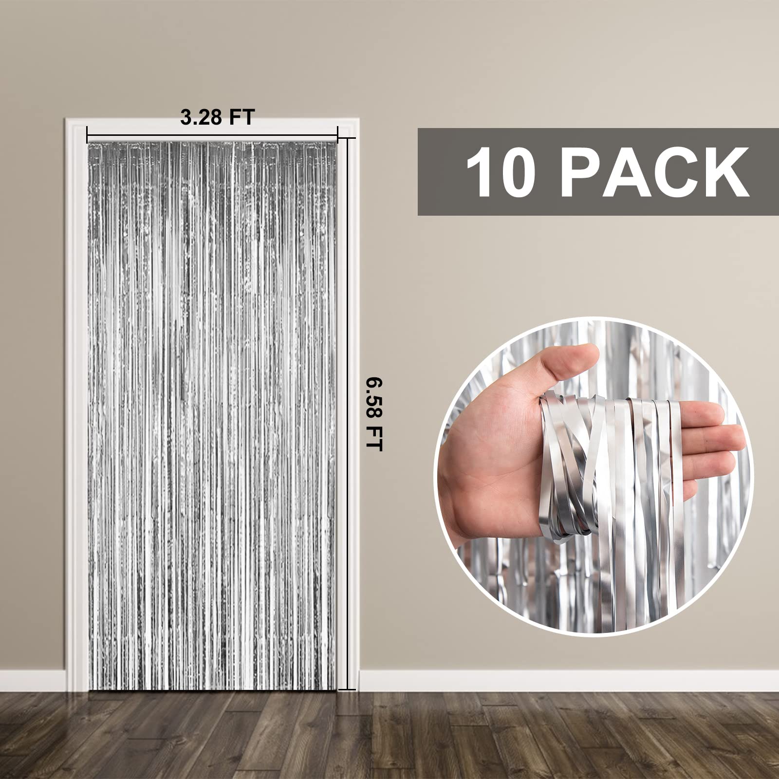 10 Pack Foil Curtain Backdrop Silver Metallic Tinsel Foil Fringe Curtains Photo Booth Props for Birthday Wedding Engagement Baby Shower Bachelorette Christmas Holiday Celebration Party