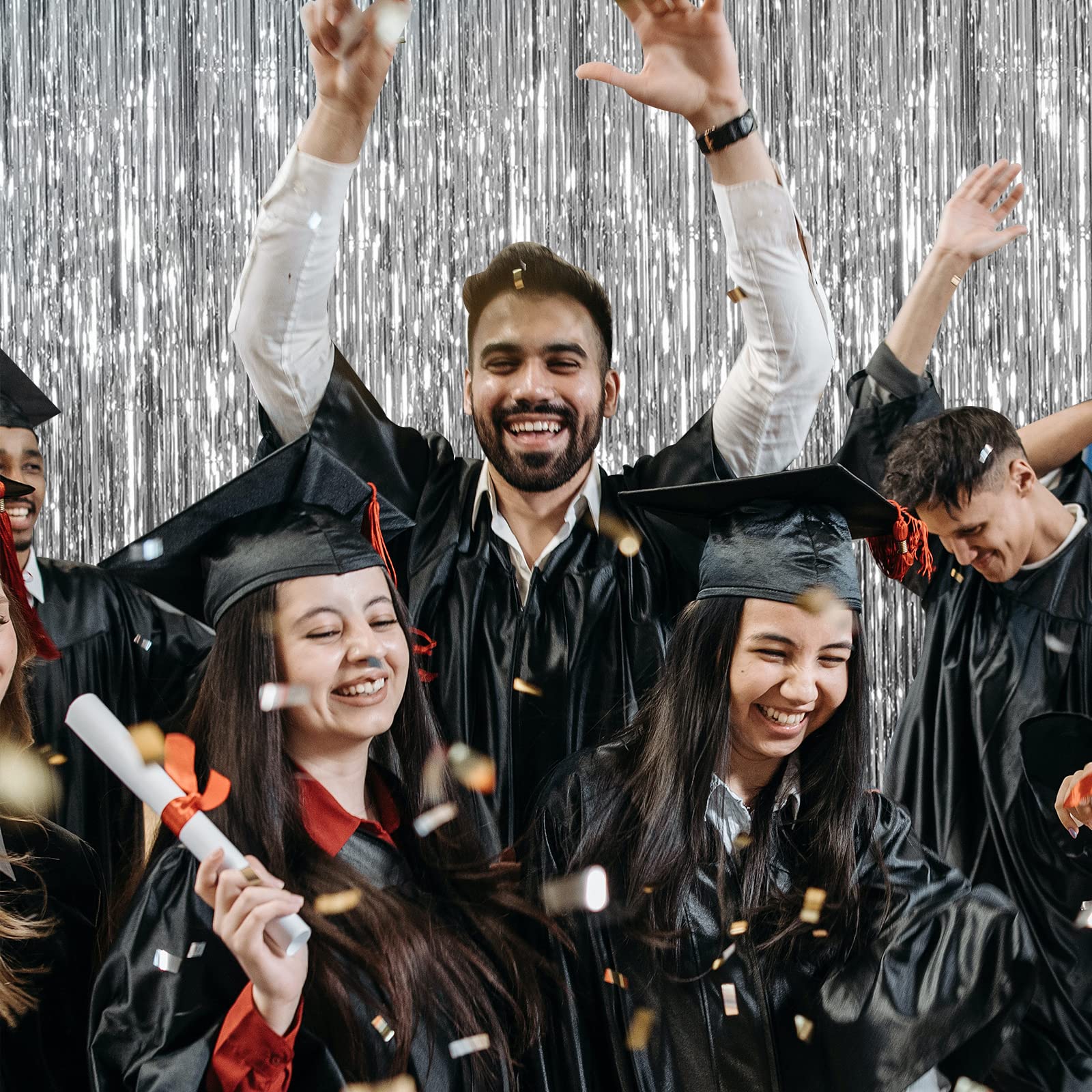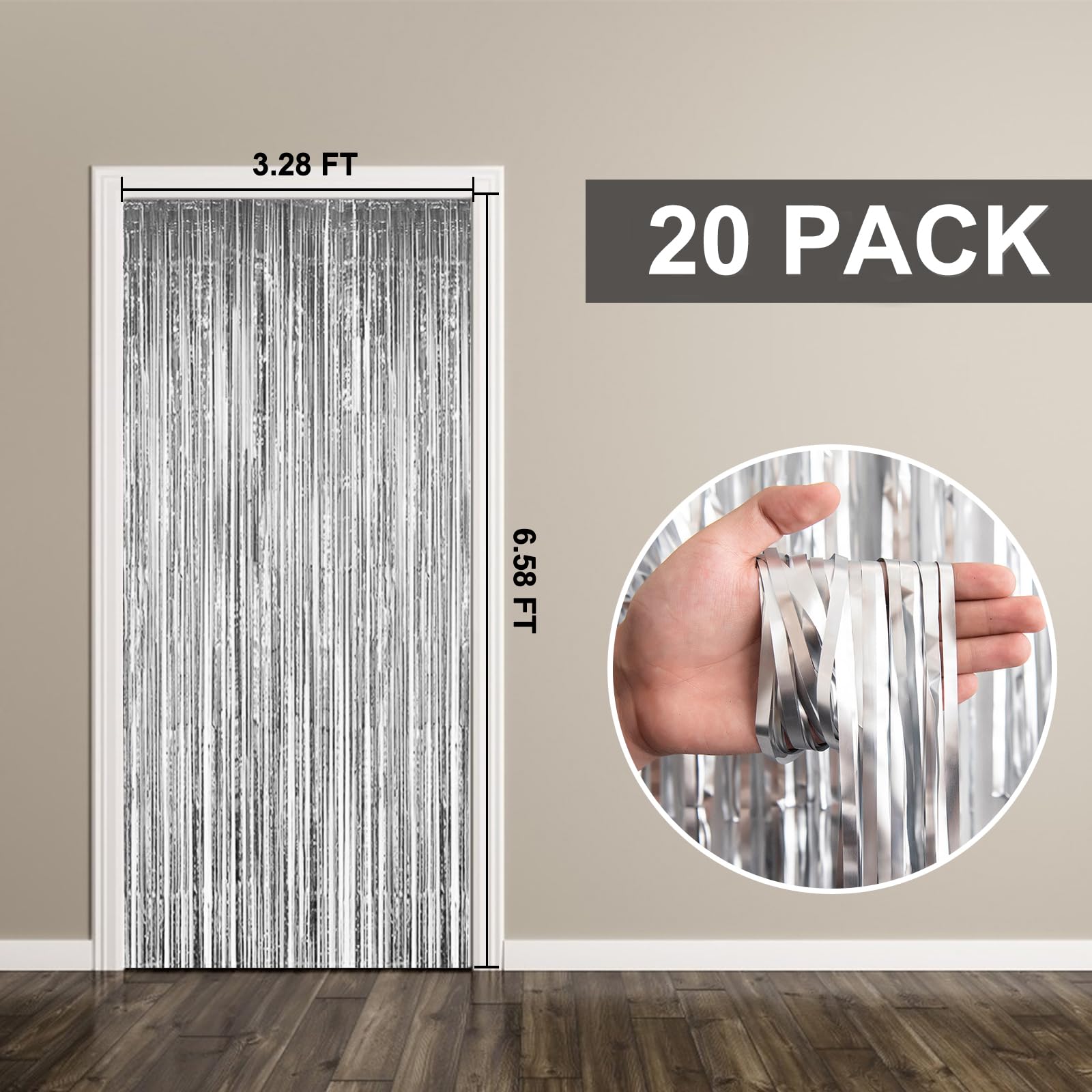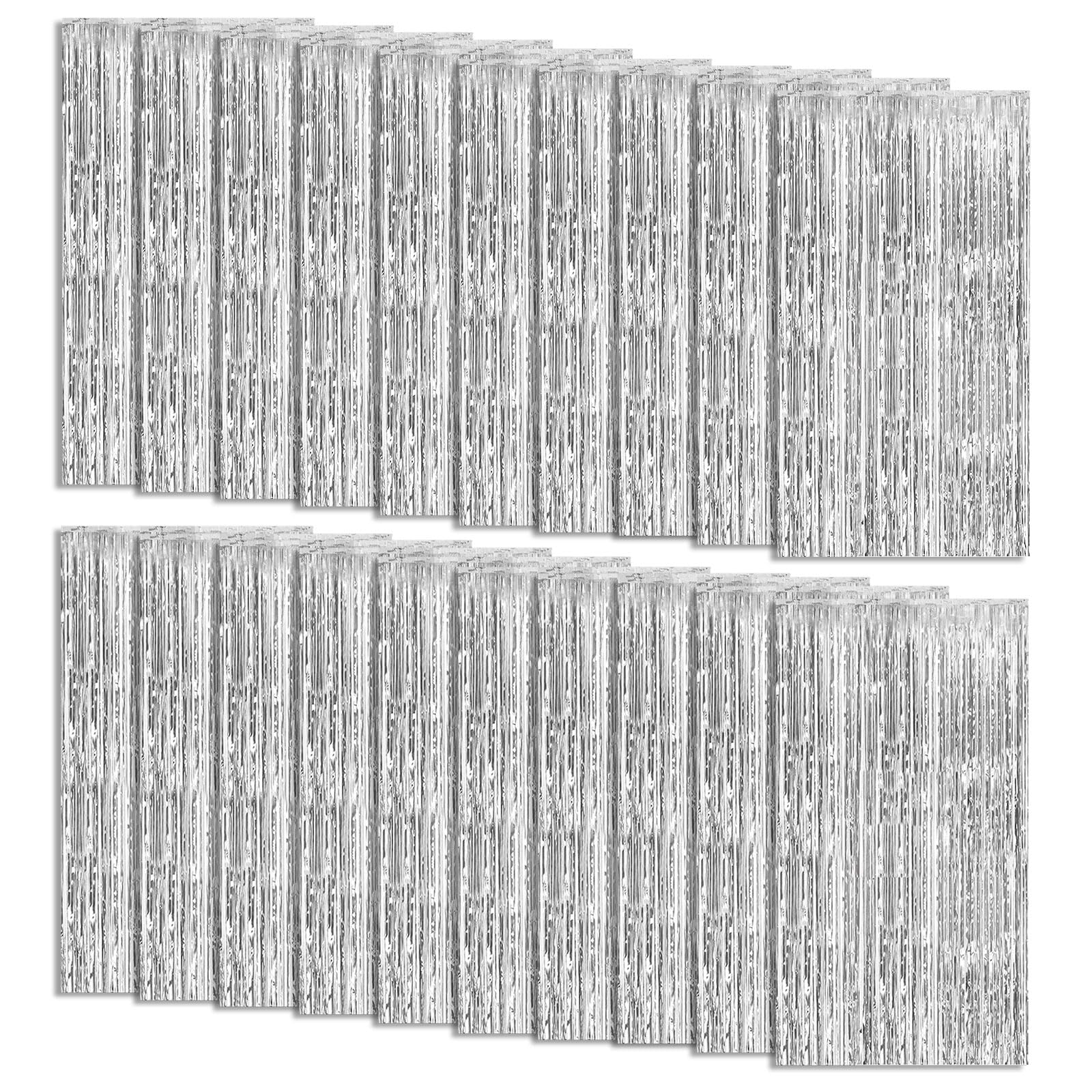 20 Pack Foil Curtain Backdrop Silver Metallic Tinsel Foil Fringe Curtains Photo Booth Props for Birthday Wedding Engagement Baby Shower Bachelorette Christmas Holiday Celebration Party Decorations