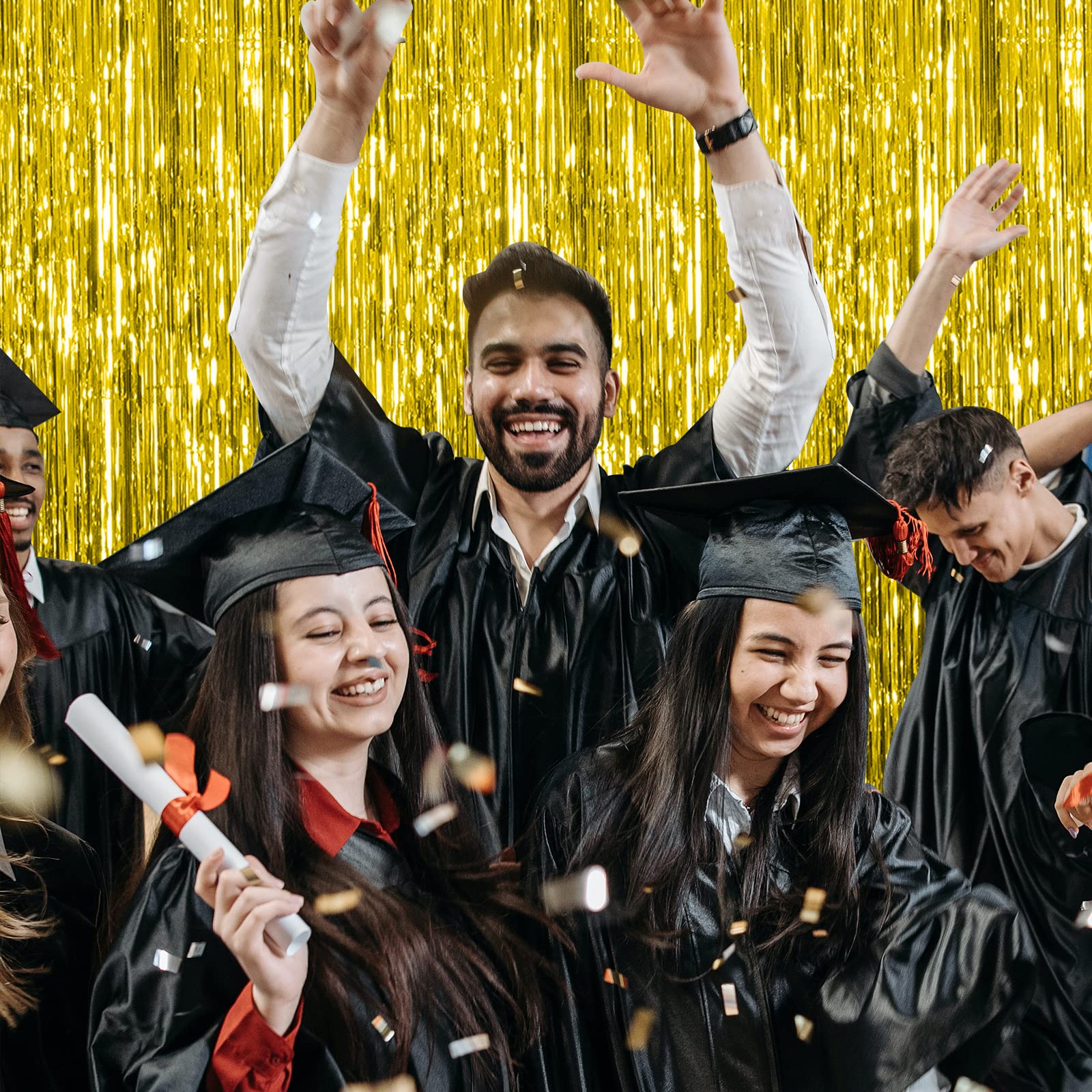 5 Pack Foil Curtain Backdrop Gold Metallic Tinsel Foil Fringe Curtains Photo Booth Props for Birthday Wedding Engagement Baby Shower Bachelorette Christmas Holiday Celebration Party Decorations