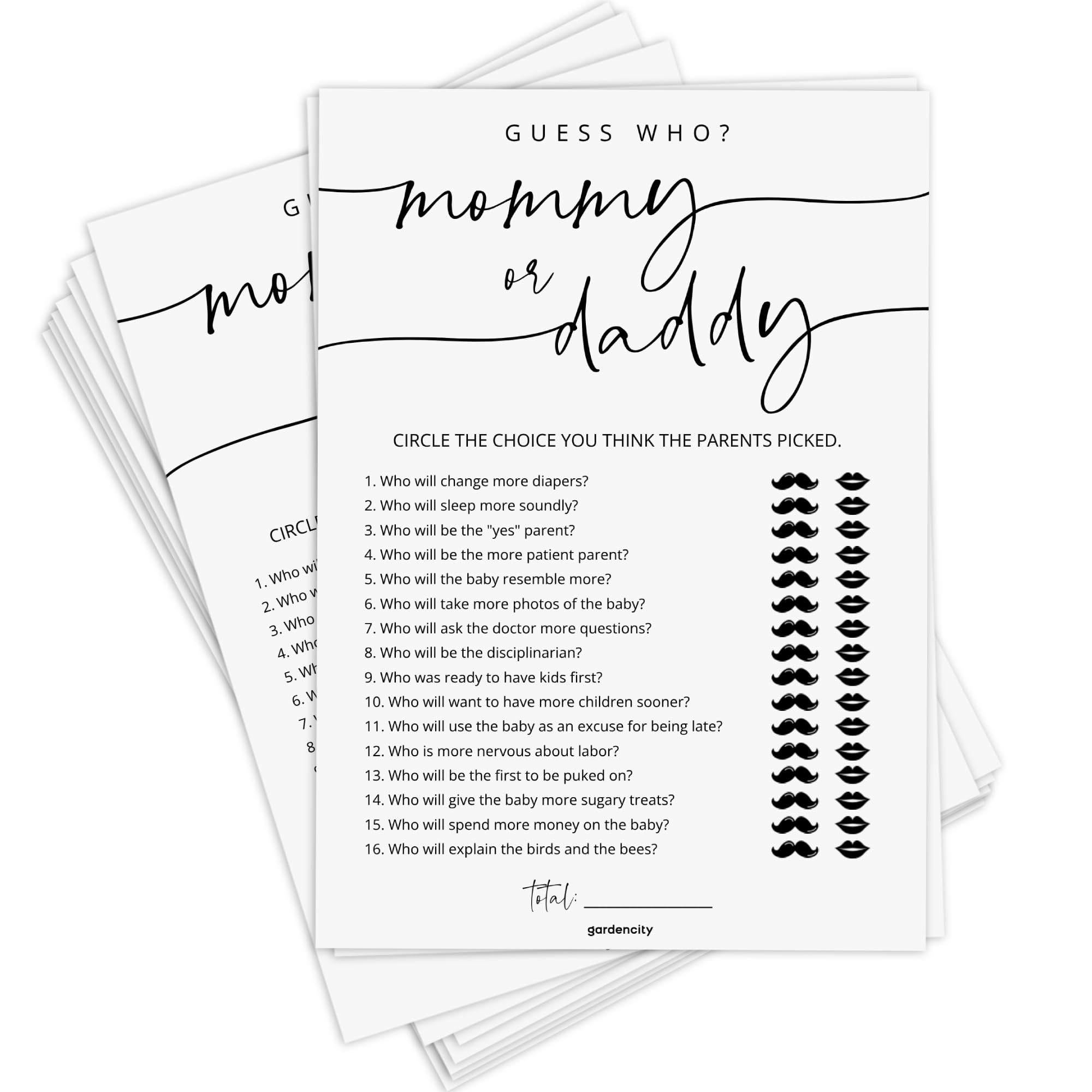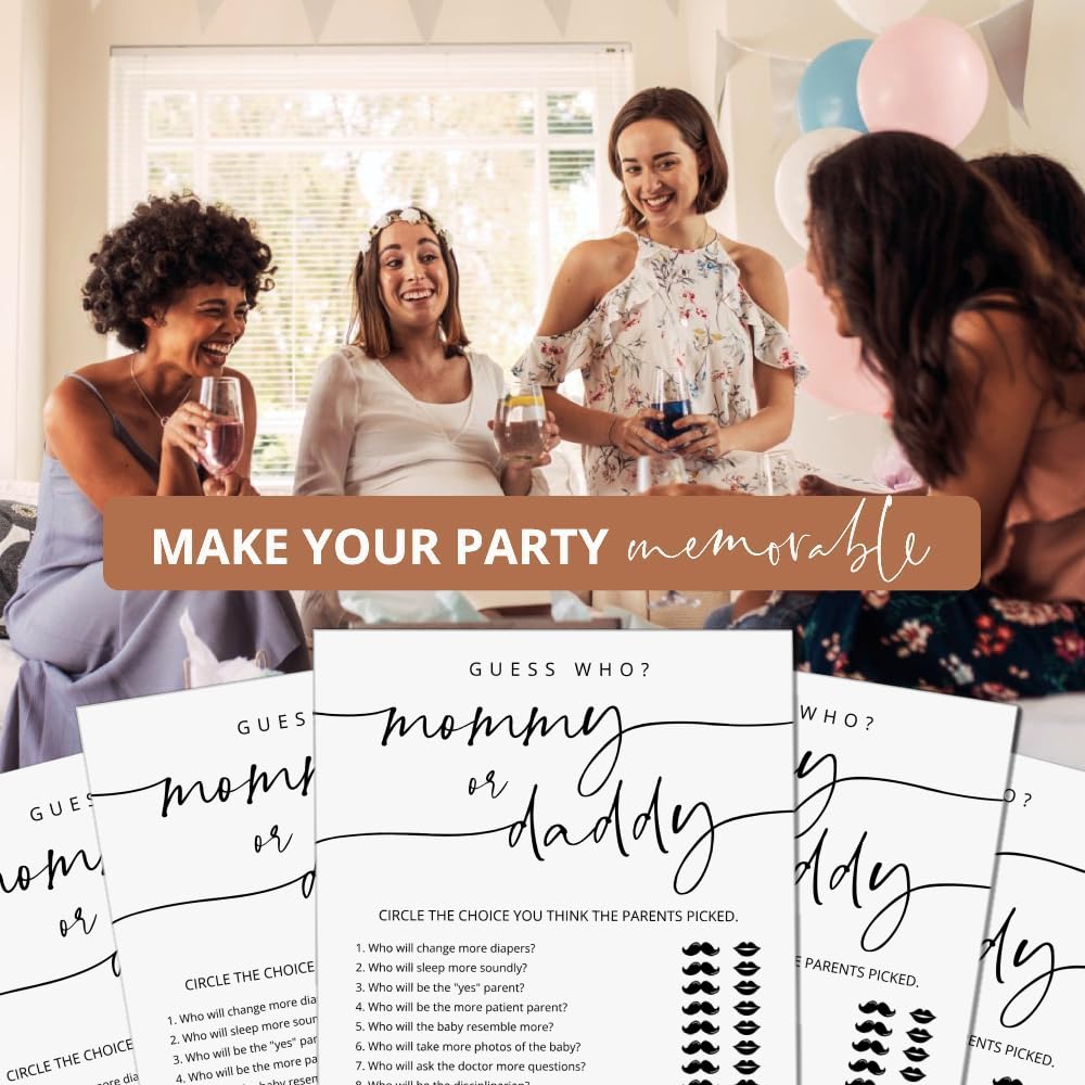 GardenCity 50 Guess Who Mommy or Daddy Game Cards, Fun Baby Shower Games for Boy or Girl, Gender Neutral - MinimalistGardenCity 50 Guess Who Mommy or Daddy Game Cards, Fun Baby Shower Games for Boy or Girl, Gender Neutral – Minimalist