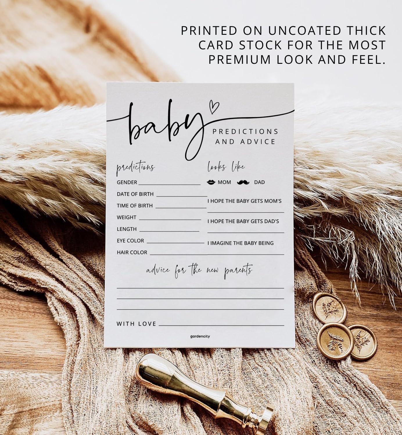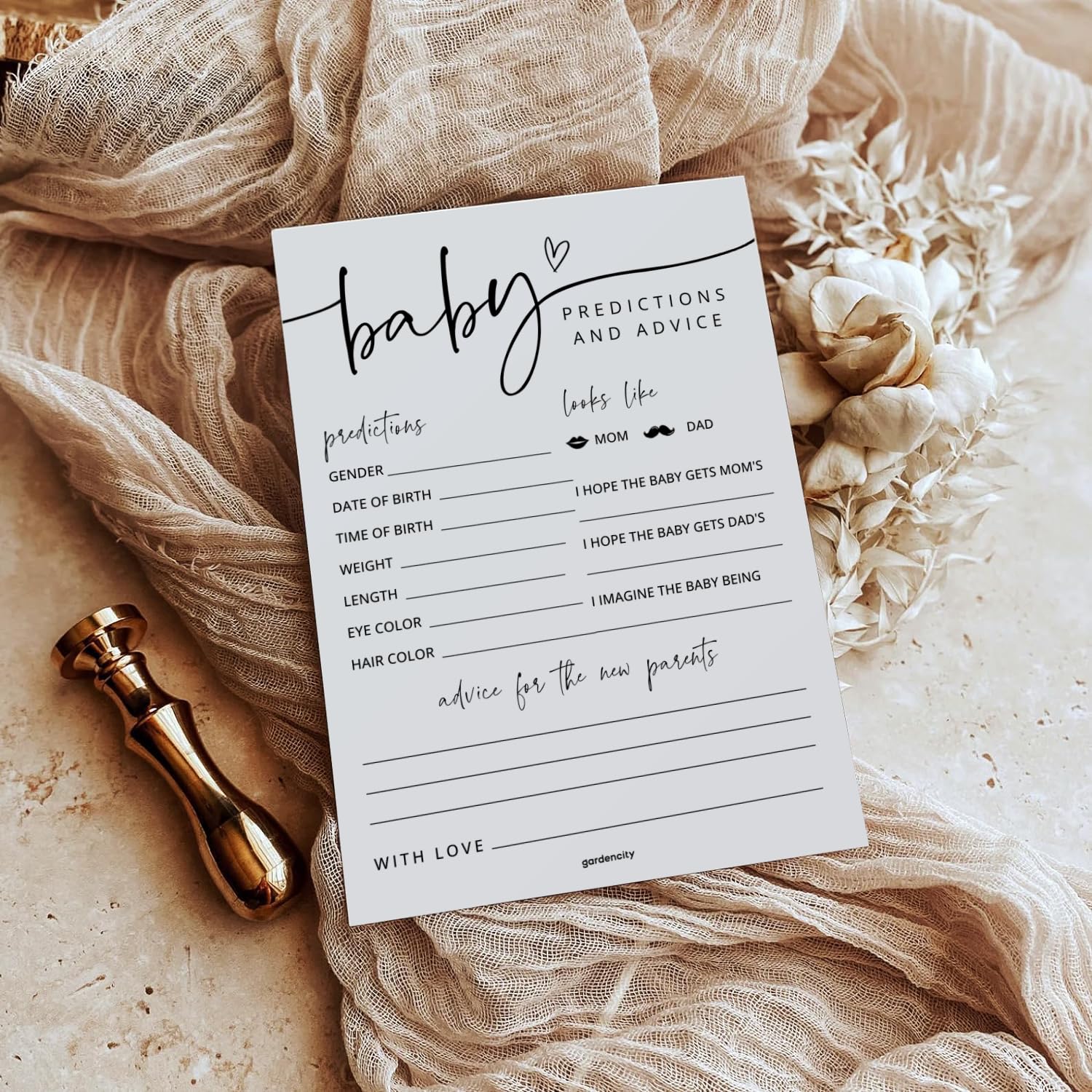 GardenCity 50 Large Baby Predictions Cards, Advice and Wishes, Fun Baby Shower Games for Boy or Girl, Gender Neutral – Minimalist