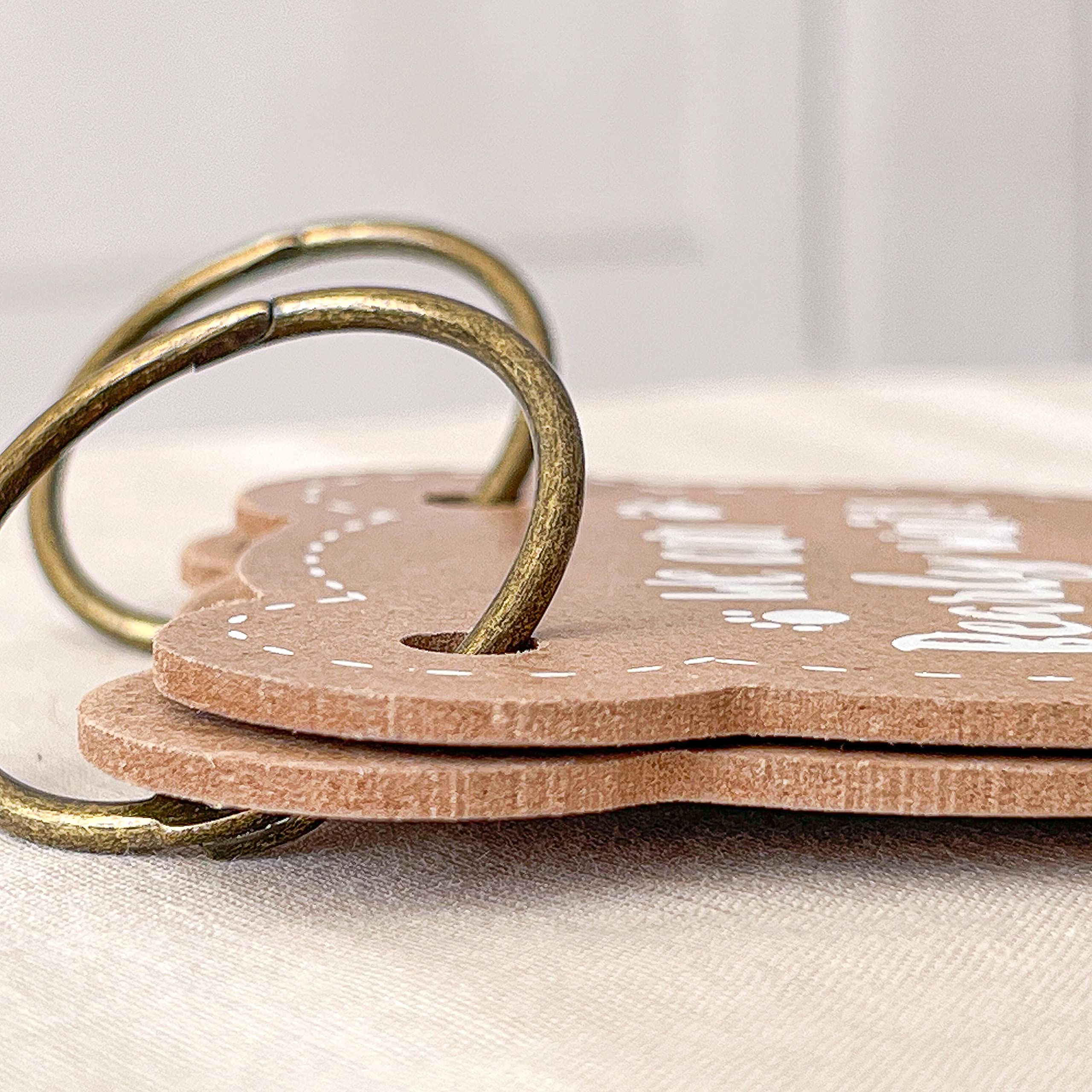 Celebrate new beginnings with the Kate Aspen Teddy Bear Baby Shower Prediction and Advice Cards Book Keepsake—a delightful mix of memory-making and fun designed for modern baby shower games. Crafted in a sweet bear shape, this kraft-colored set includes 50 baby prediction cards printed with white prompts for guests to fill in their guesses, heartfelt wishes, and advice for new parents baby shower celebrations. Each card becomes a personal message the parents will treasure long after the party ends. The set includes a hardboard front and back bear-shaped cover with metal book rings to bind them into a keepsake baby shower guest book. The front also includes a photo window to feature an ultrasound or baby image, adding a sentimental touch. Whether you’re planning a we can bearly wait baby shower theme or a neutral rustic setup, this activity fits seamlessly into any baby shower decor. Guests love filling out baby shower advice cards and participating in meaningful games that offer lasting memories. Use this as part of your bear baby shower table or advice and wishes cards station, and watch guests light up with laughter and love. This set is perfect for advice cards baby shower games, a baby shower prediction cards table, or even as part of the baby shower advice cards for parents to be display. Ideal for gender-neutral gatherings or just thoughtful fun, it offers a way to compile all those sweet predictions and baby advice cards into one beautiful book. From baby shower prediction and advice cards to keepsake gifts, this complete activity turns words of love into a lasting treasure.