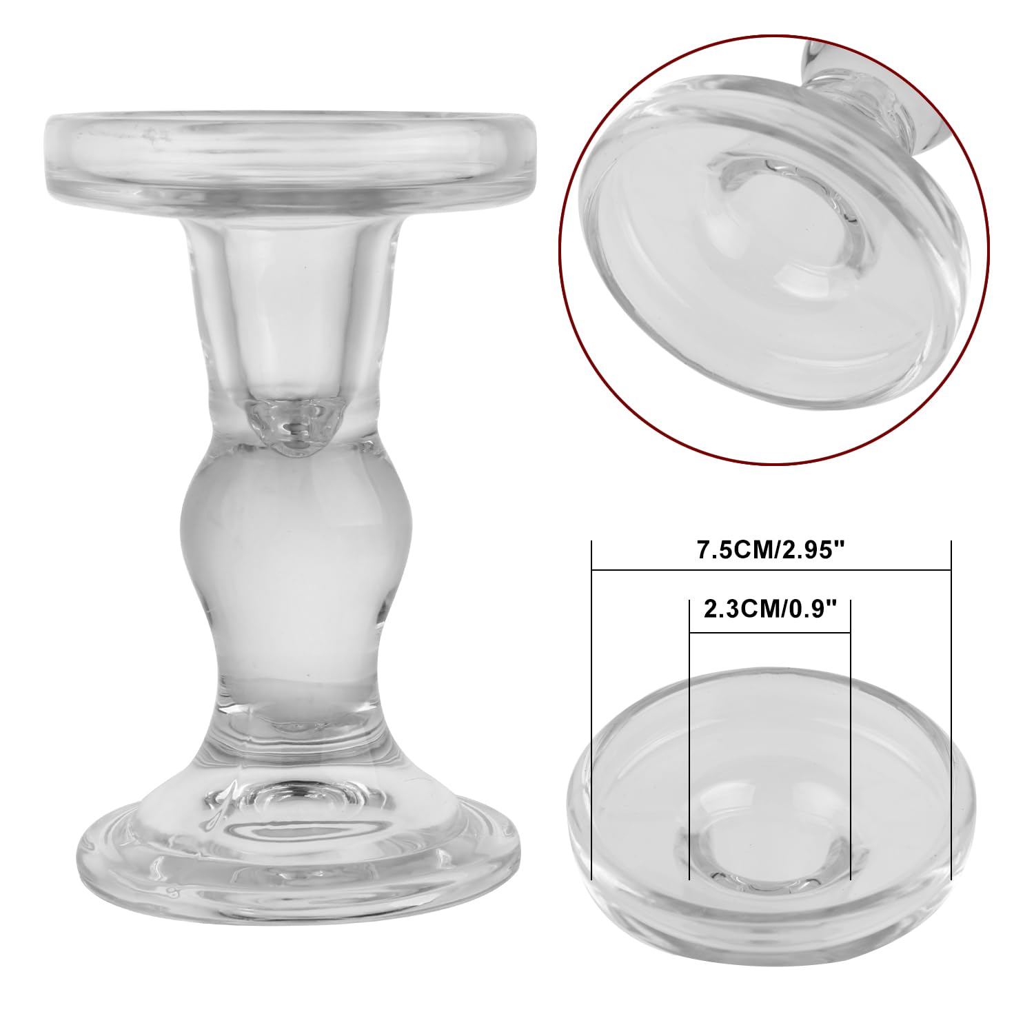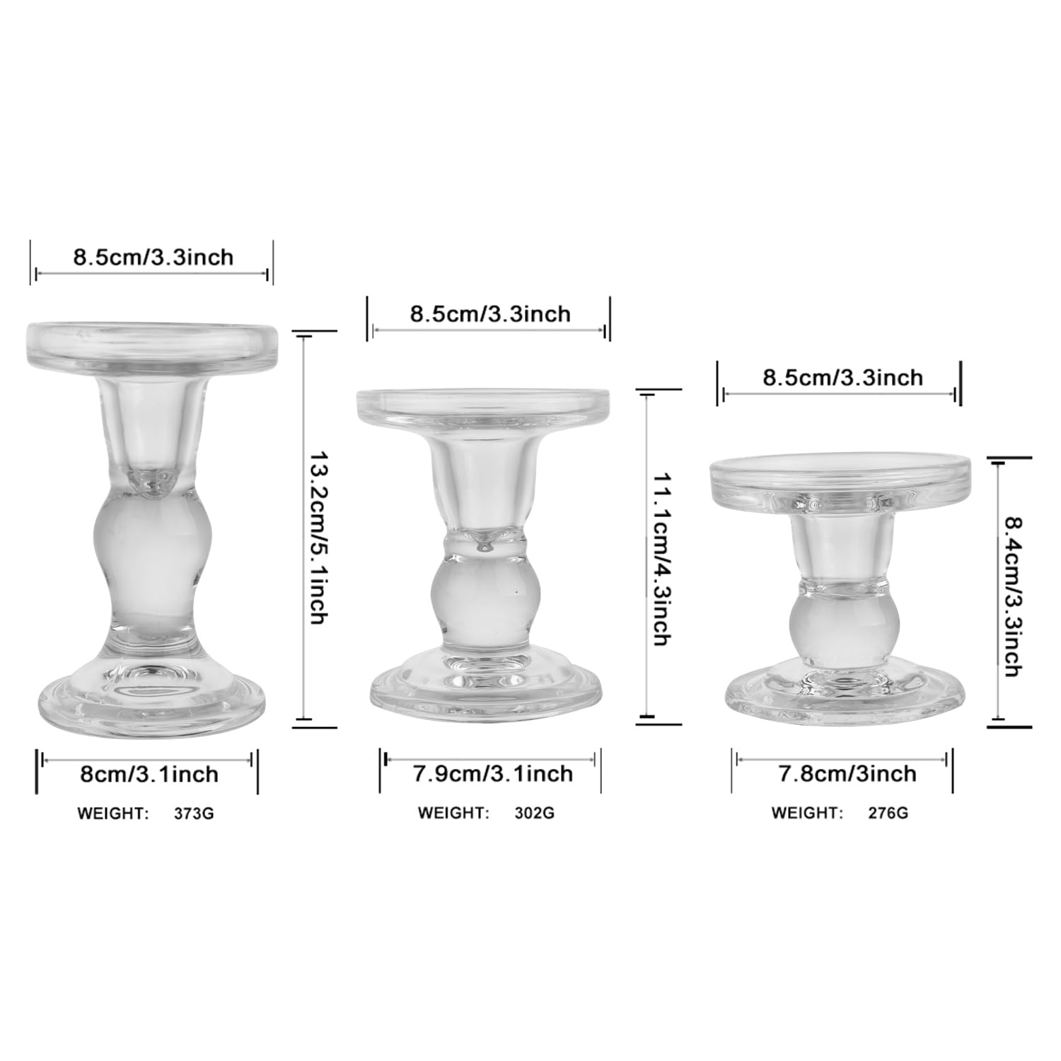 BTGLLAS 3-Piece Set of Glass Candlestick, Crystal Candlestick Holder Holder and Conical Candle, Christmas Candle Holder Decoration, Family Living Room Wedding Candle Holder (Clear)
