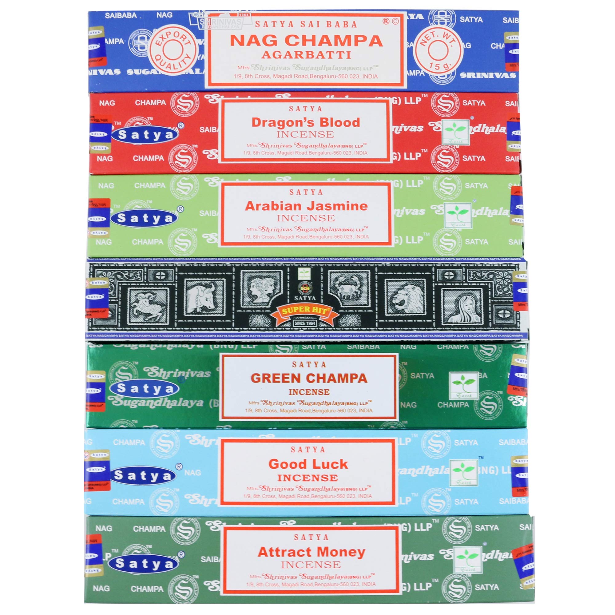 Satya Incense Sticks Gift Set, 7 Scents, Nag Champa, Super Hit, Dragon's Blood, Sandalwood, Patchouli, Lavender, Positive Vibes, 15g Each (Relaxation Mix)Satya Incense Sticks Gift Set, 7 Scents, Nag Champa, Super Hit, Dragon’s Blood, Sandalwood, Patchouli, Lavender, Positive Vibes, 15g Each (Relaxation Mix)