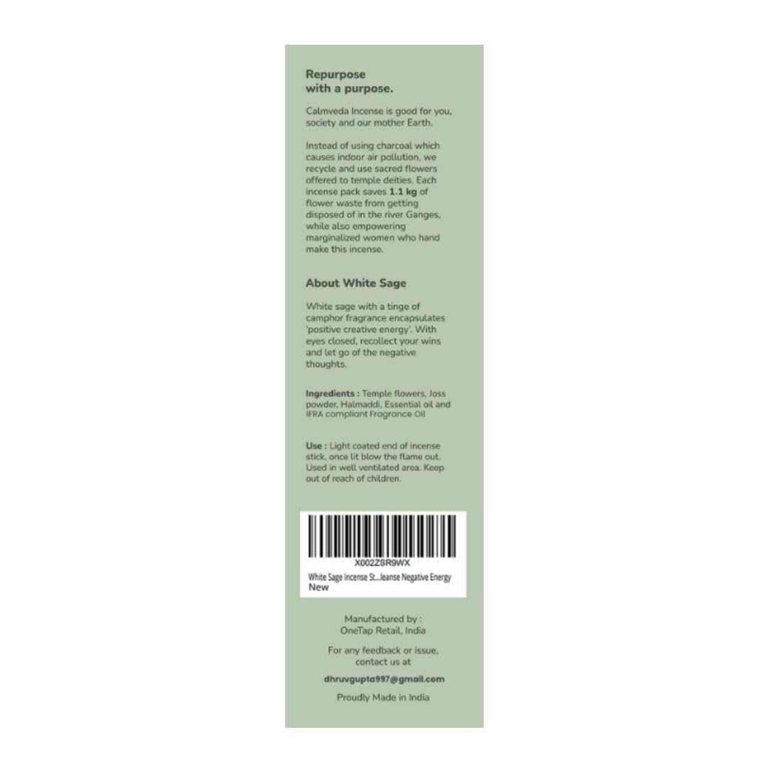 White Sage Incense Sticks for Cleansing – (80 Scent Sticks) Charcoal Free, Made from Upcycled Flowers | Protection Incense to Cleanse Negative Energy