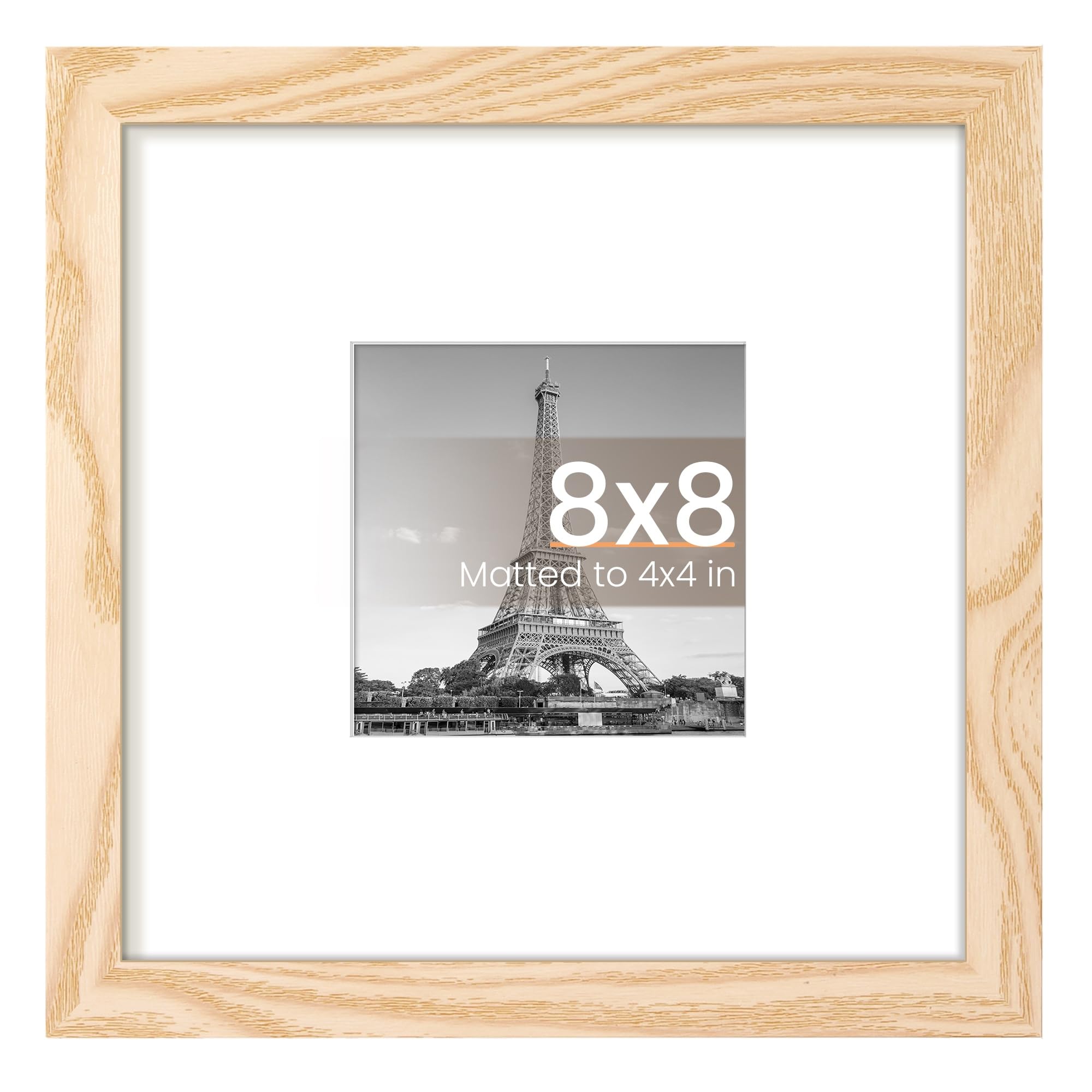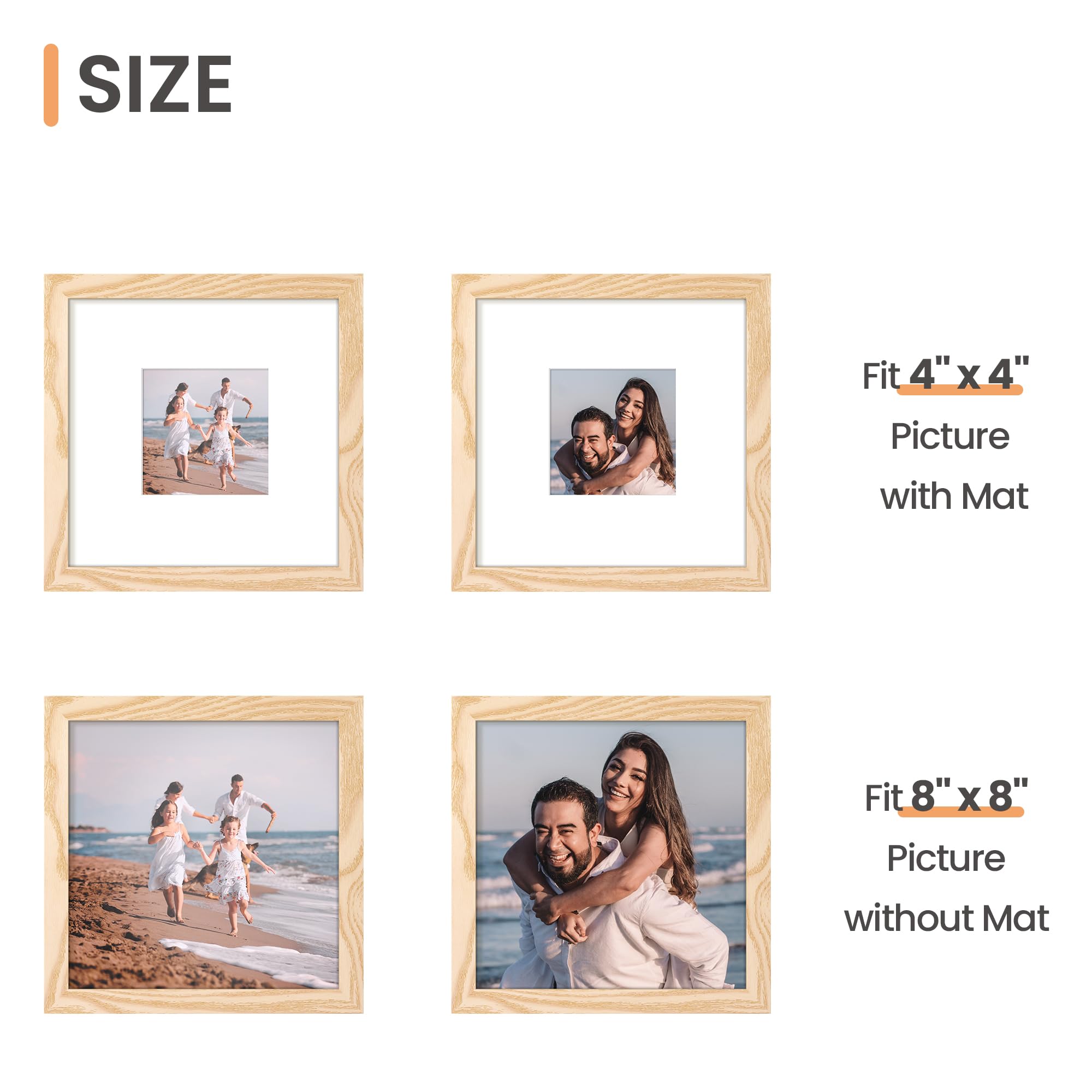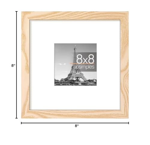 upsimples 8×8 Picture Frame, Display Pictures 4×4 with Mat or 8 x 8 Without, Wall Hanging Photo Frames, Natural, 1 Pack