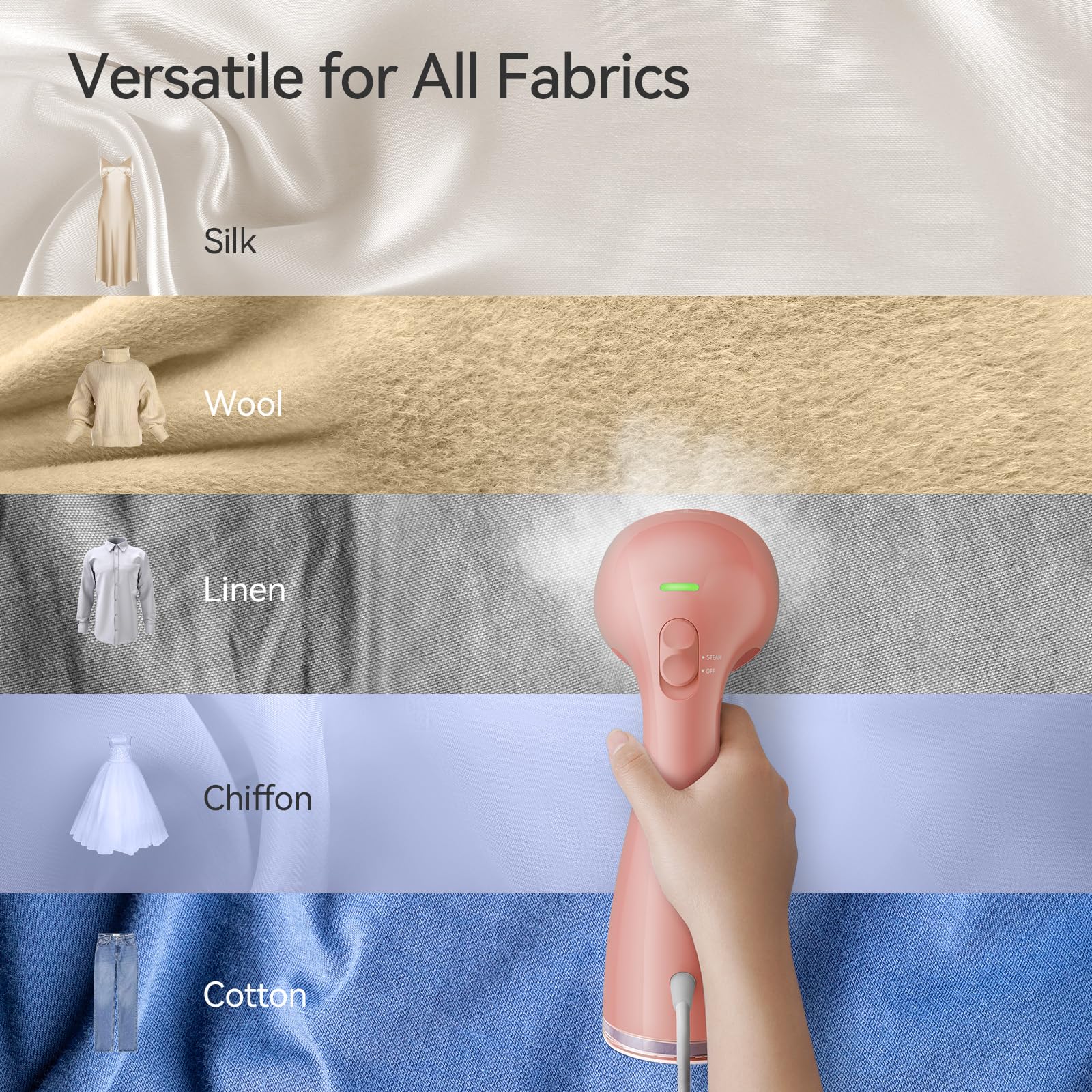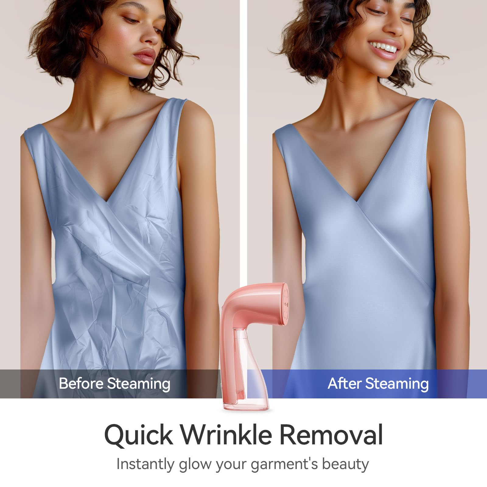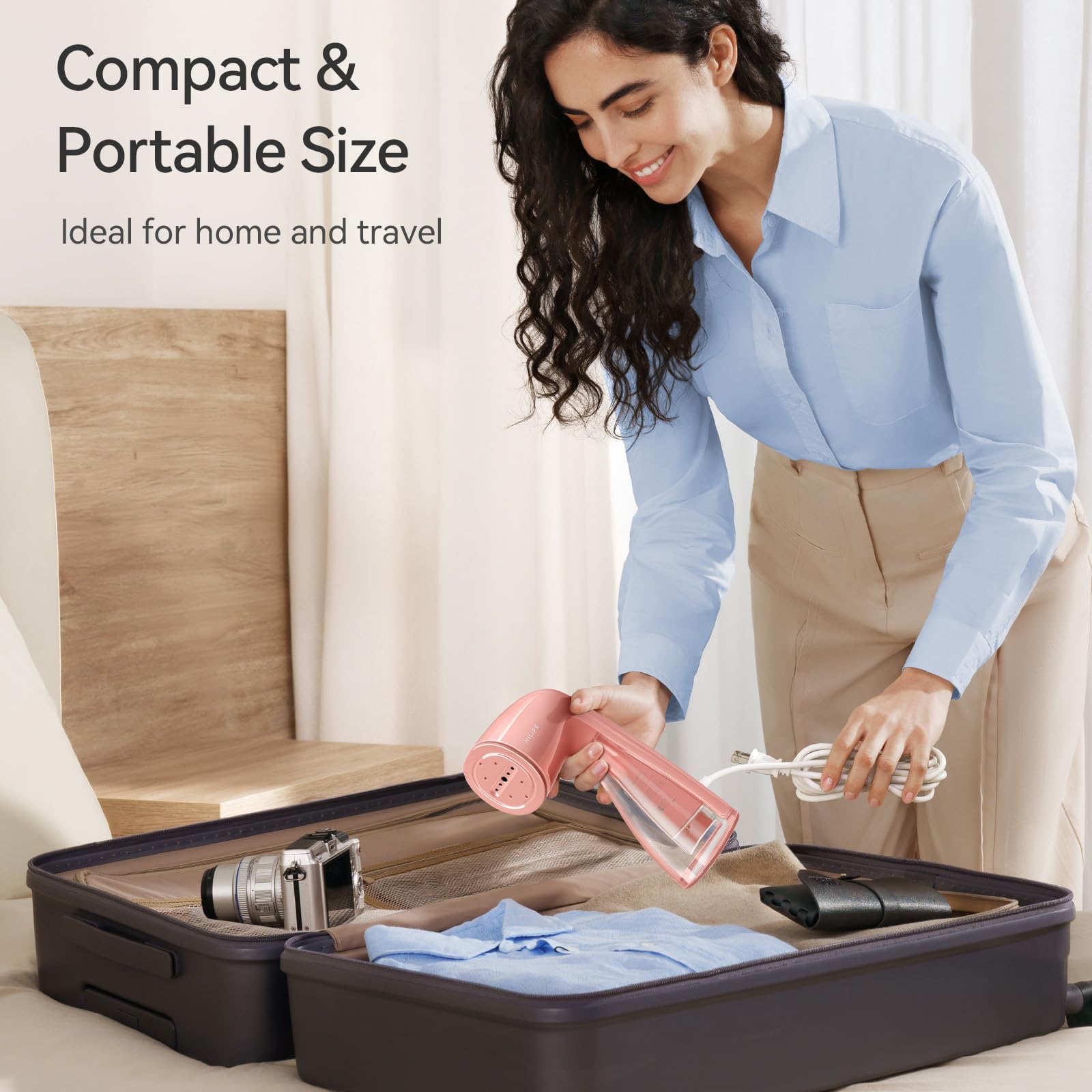 HiLIFE Steamer for Clothes, 1100W Clothes Steamer, Fast Wrinkle Removal with Large 300ml Tank, Ideal for All Fabrics, Easy to Use, Compact and Portable Travel Garment Steamer-Pink