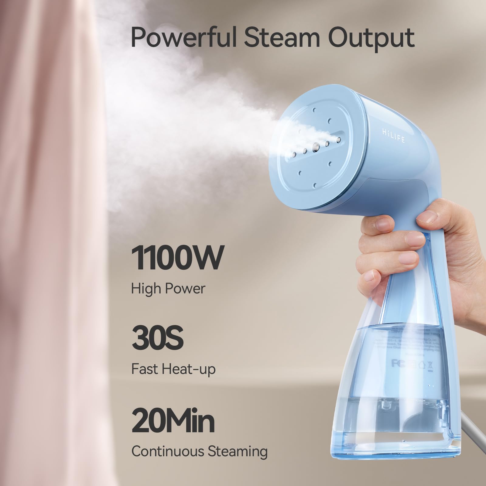 HiLIFE Steamer for Clothes, 1100W Clothes Steamer with Large 300ml Tank, Handheld Clothing Steamer, Fabric Wrinkle Remover, Portable & Compact Travel Size Garment Steamer ONLY FOR 120V (Blue)