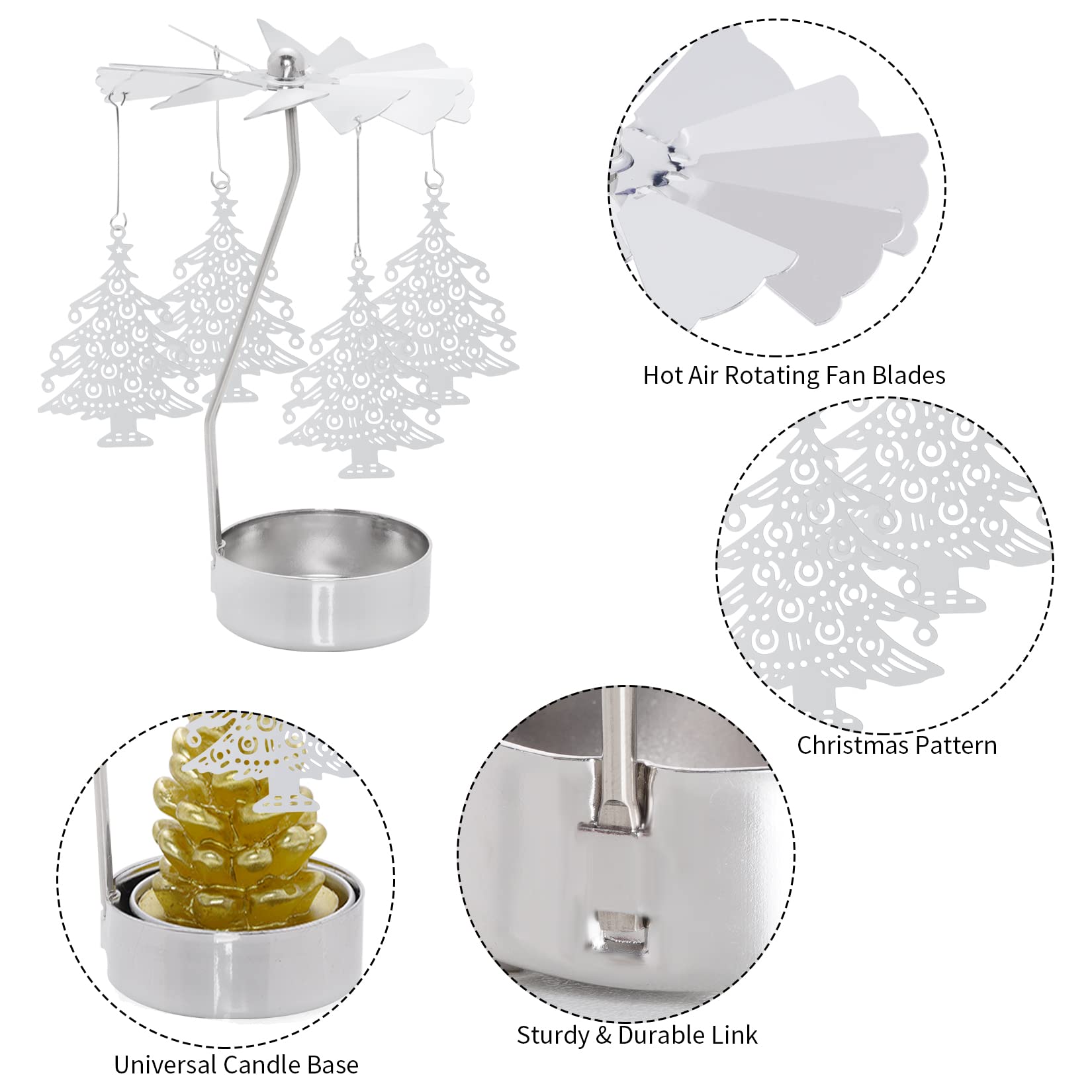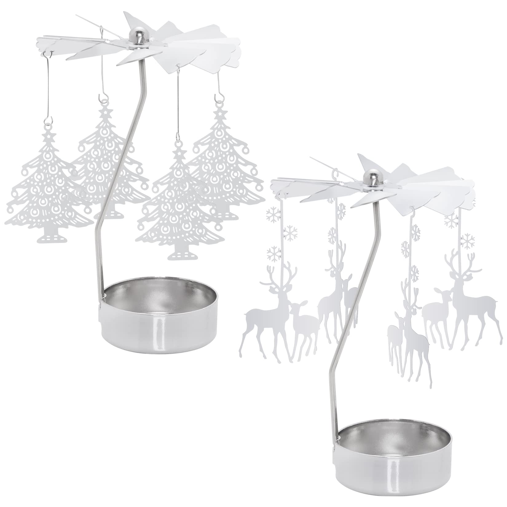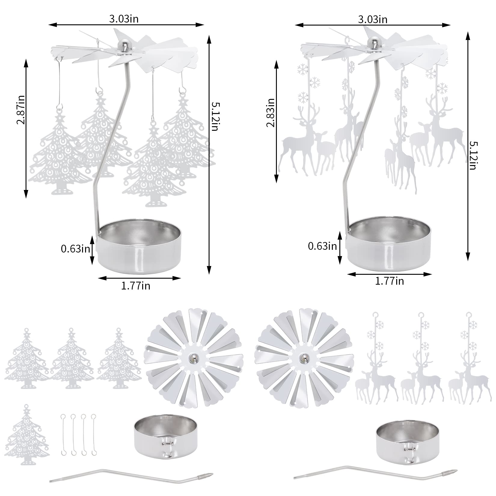 2 Pcs Rotary Candle Holder Spinning Candleholder Metal Silver Christmas Tree & Reindeer Style Heliltd