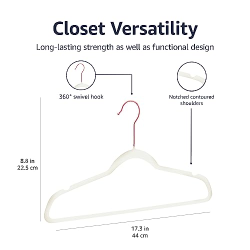 Amazon Basics Slim, Velvet, Non-Slip Suit Clothes Hangers, Ivory/Rose Gold – Pack of 100