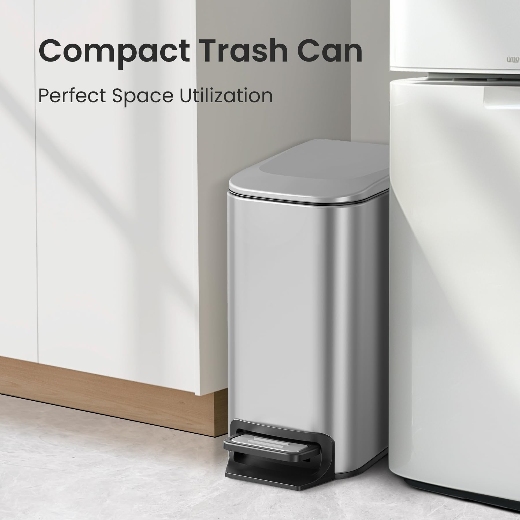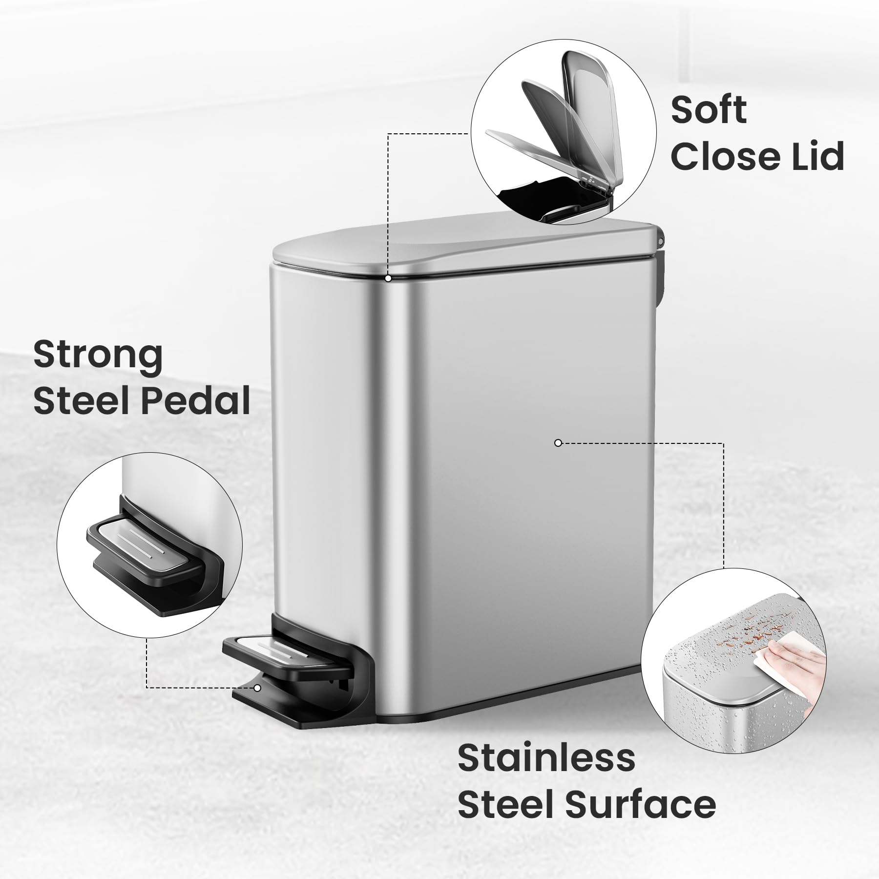 Cesun Small Bathroom Trash Can with Lid Soft Close, Step Pedal, 6 Liter / 1.6 Gallon Stainless Steel Mini Garbage Can for Office, Outdoor Trash Bin with Removable Inner Bucket (Silver)