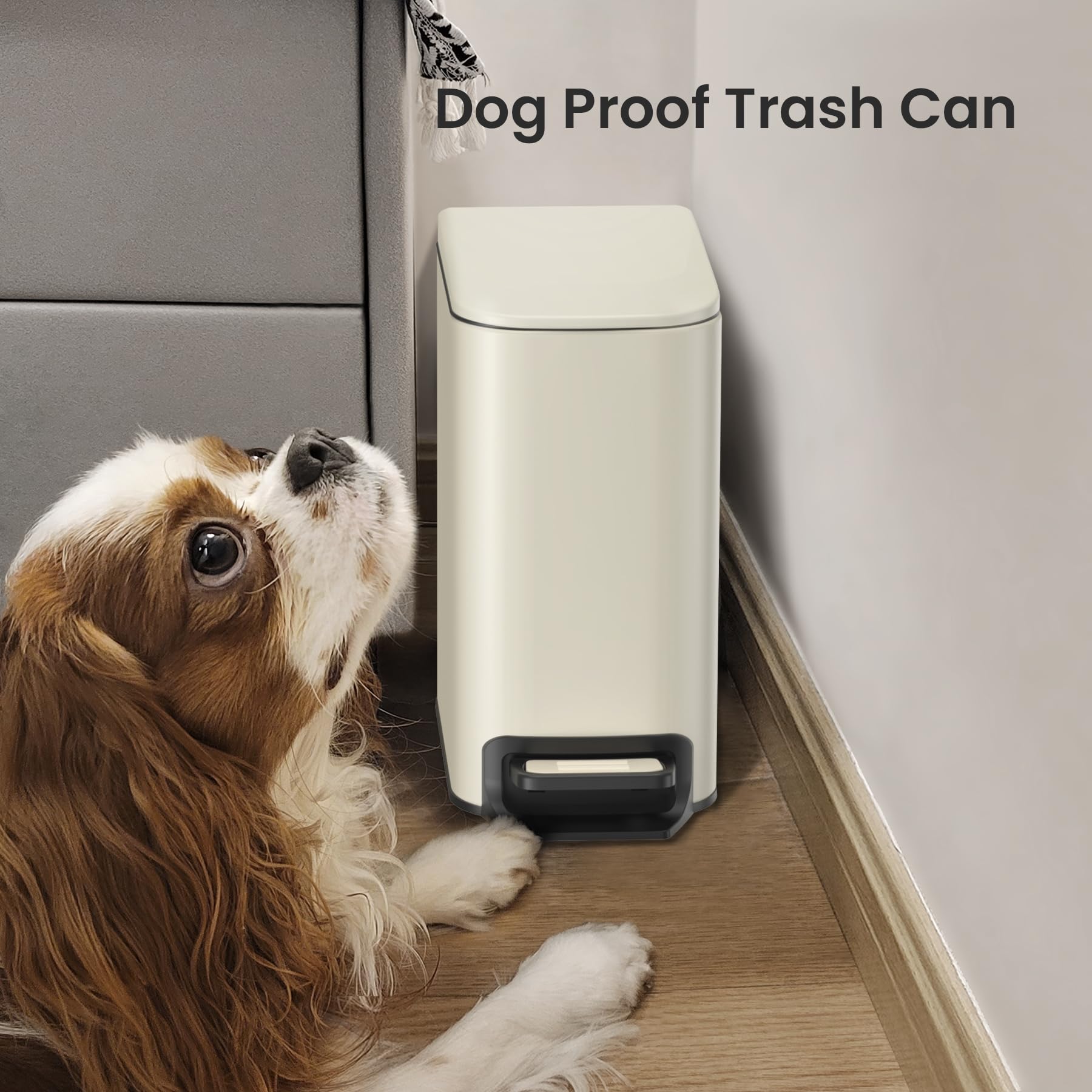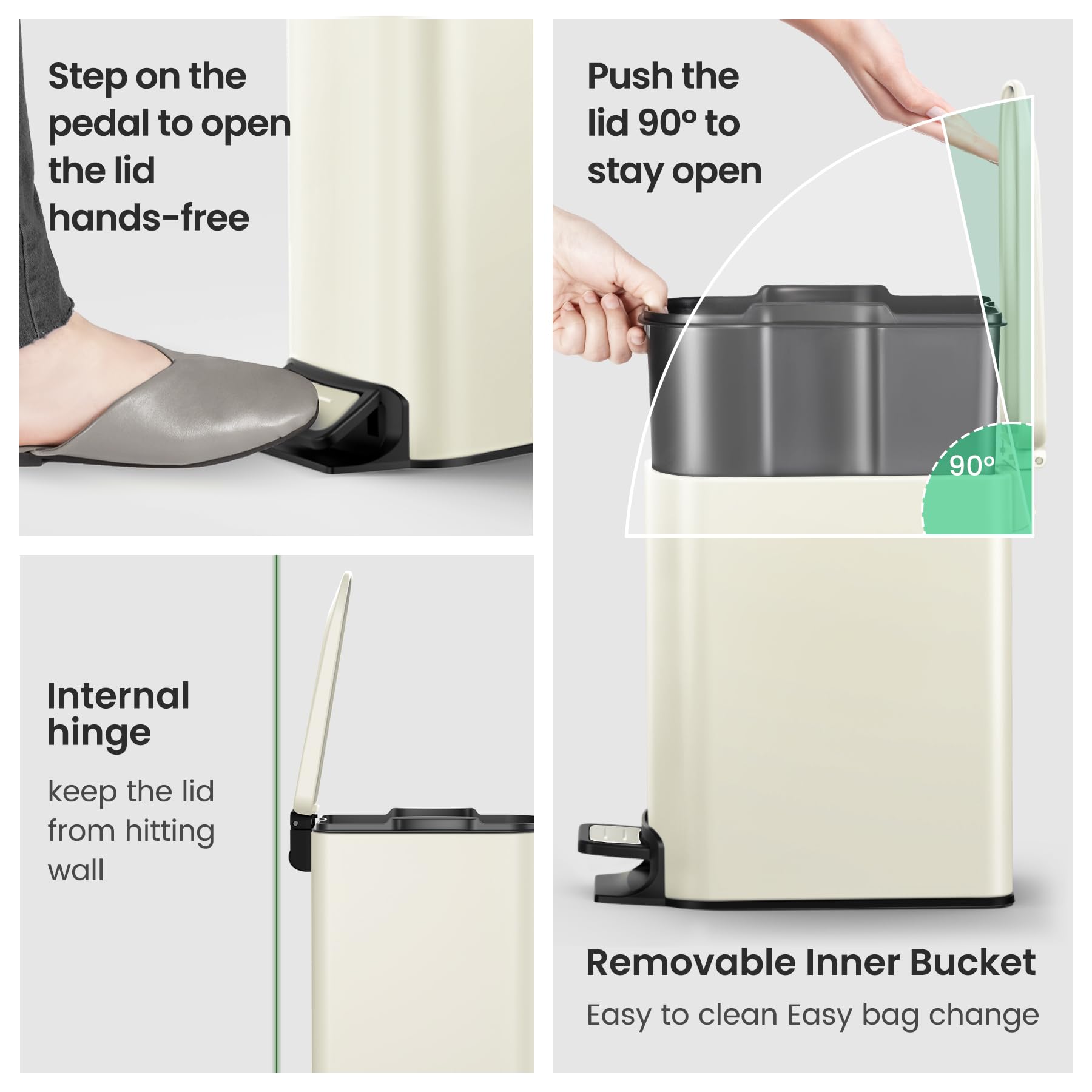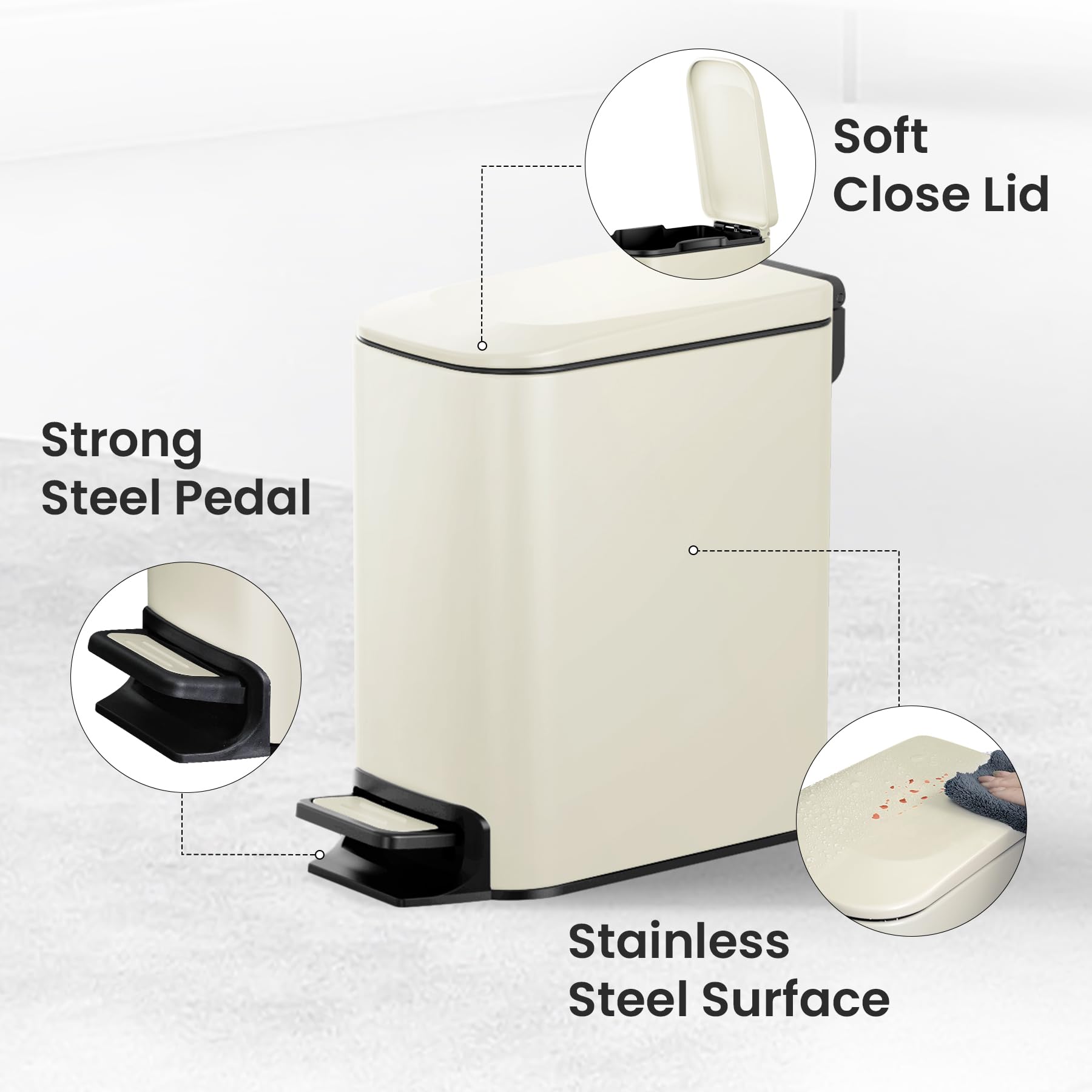Cesun Small Bathroom Trash Can with Lid Soft Close, Step Pedal, 6 Liter / 1.6 Gallon Stainless Steel Garbage Can with Removable Inner Bucket, Anti-Fingerprint Finish (Creamy White)