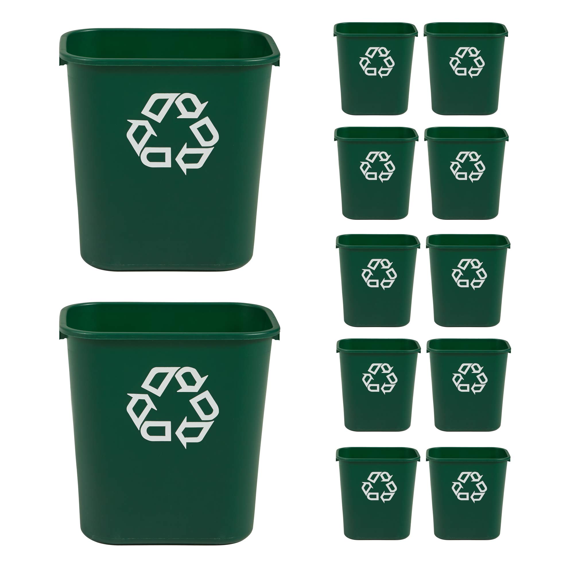 Rubbermaid Commercial Products Deskside Recycling Can, 7-Gallon/28-Quart, Green Recycling Symbol, Plastic, for Bedroom/Bathroom/Office, Fits Under Desk/Sink/Cabinet, Pack of 12
