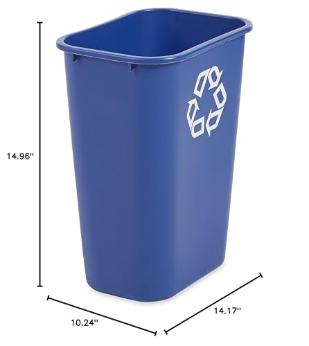 Rubbermaid Commercial Products Deskside Recycling Can, 10.25-Gallon/41-Quart, Blue Recycling Symbol, Plastic, for Bedroom/Bathroom/Office/Under Desk/Sink