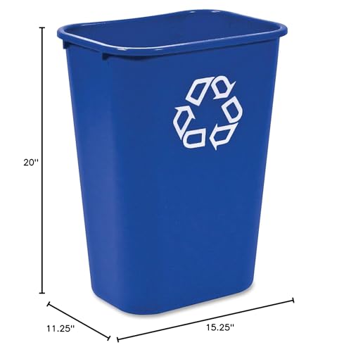 Rubbermaid Commercial Products Deskside Recycling Can, 10.25-Gallon/41-Quart, Blue Recycling Symbol, Plastic, for Bedroom/Bathroom/Office/Under Desk/Sink, Pack of 12